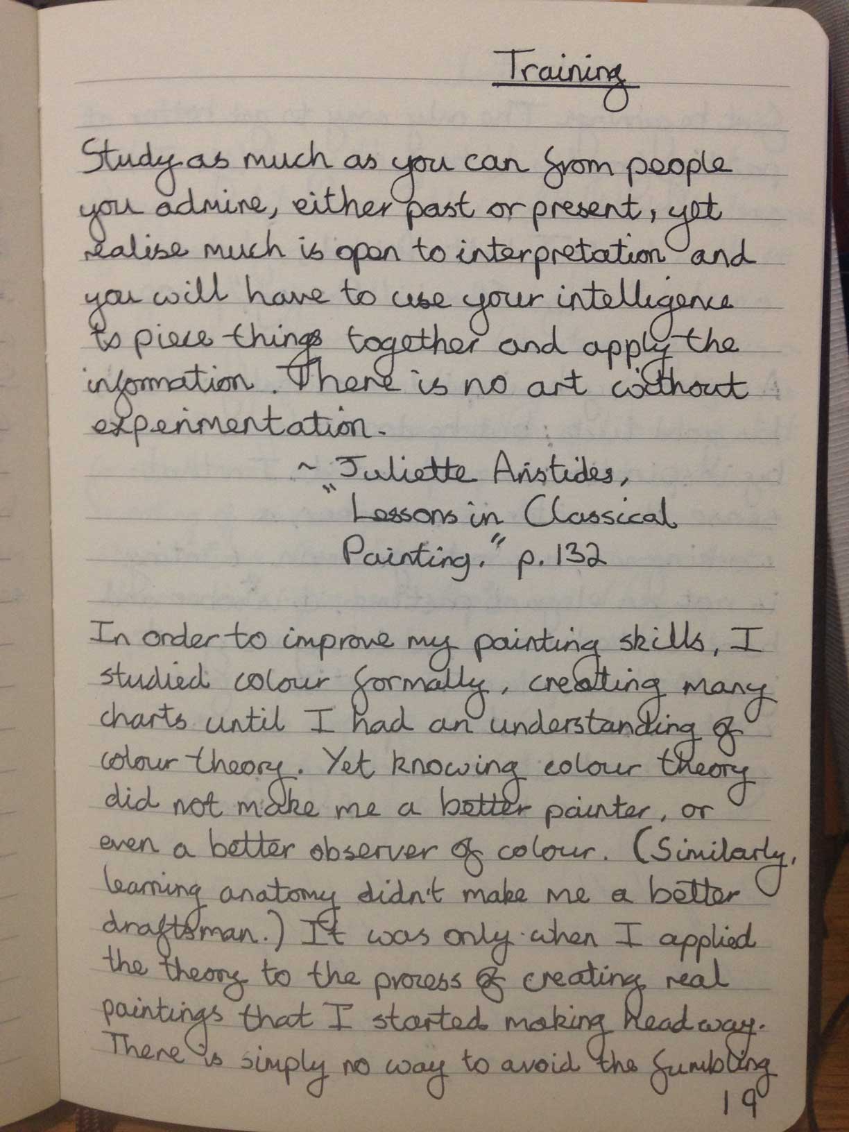 A private record gives us freedom. A closed space with a constituency of one, notebooks are things we never need share. As such, they foster honest expression with a welcome gentleness, without judgement. Privacy with a notebook also means we don't need to filter or think about neatness in appearance or language. And certainly, there is no expectation of success nor any repercussion of failure. There is room to experiment and hash something out. We can get things wrong and get things right, quite freely. Imagine an athlete at a closed off arena for their practice. They may practice for hours, repeating a set of events for a competition. They may trip and fall and curse. They will fail - that's why they're practicing. But the hours go on, and the athlete goes on going on. By the time the competition comes round, the crowd sees their event and - God willing - their triumph. They'll never see the practice. They may know of it and give a nod of support to the catalogue of hours, warm ups, variations, failures, eventual layers of success that the athlete accumulates in that arena, but that is not for the crowd. The arena and those countless private hours are for the athlete only, along with all its struggles and consolations. The same is true of you and your notebooks. It is a private arena, a closed and sacred space not only to record but also to create your entries. As Susan Sontag declares: