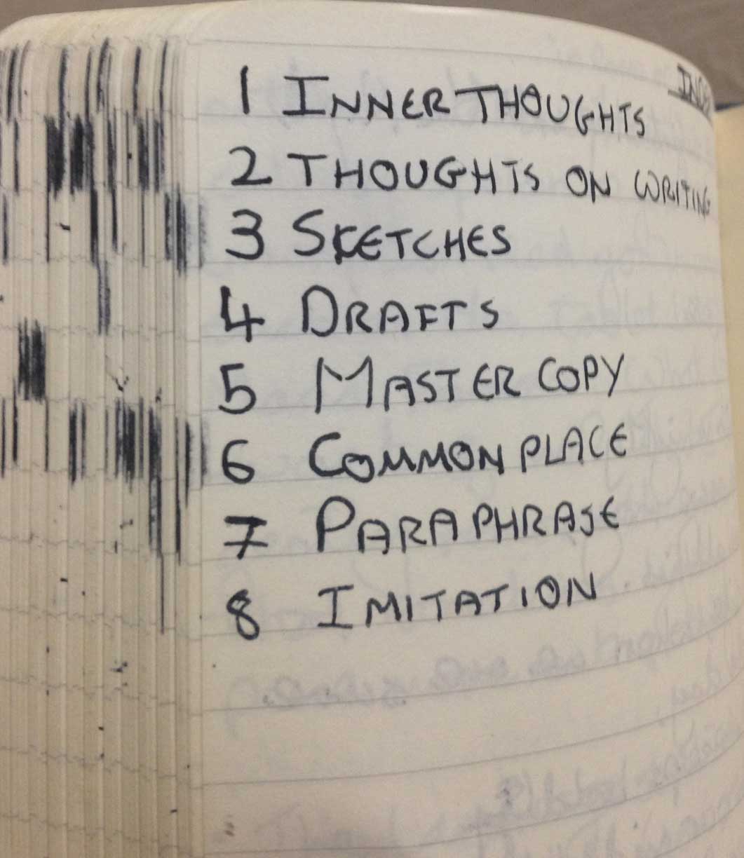 This article is written as something of an aid and starting point for writers, about what notebooks are and what they contain. Keeping a notebook can be paralysing without some measure of awareness and encouragement, so it helps first to acquaint ourselves with the space of the page. I hope that this article and others that follow will serve as welcome and practical resources to use that space for your continual benefit. To that end, I'd like to begin with a simple definition and follow in its contours.