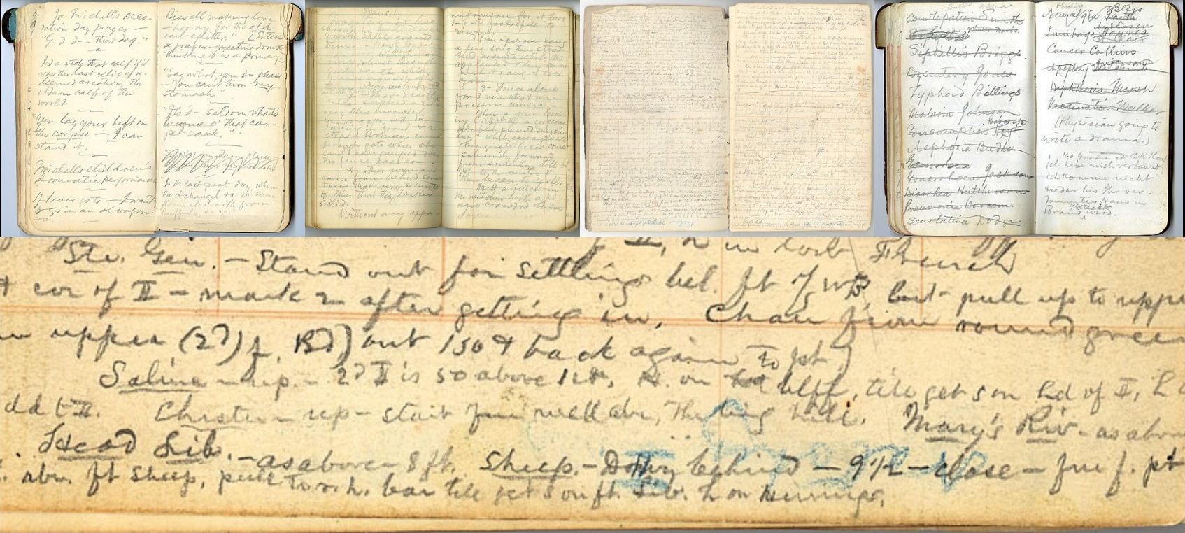 All of these are good. All of these could be yours. They each have their uses, their own moods and tones, and it helps to be open to possibilities. I want to present a small catalogue of entries from the notebooks of various writers to give you a feel for what goes on behind the scenes. These have either been published or are of public and historical interest. As such, they are readily available in one form or another for further exploration. I encourage wide and varied reading of published notebooks and diaries of writers; they gift as much courage and comfort as inspiration and insight. Below is a small imagequilt of the notebooks of Samuel Clemens (Mark Twain), illustrating diversity even from a single writer.